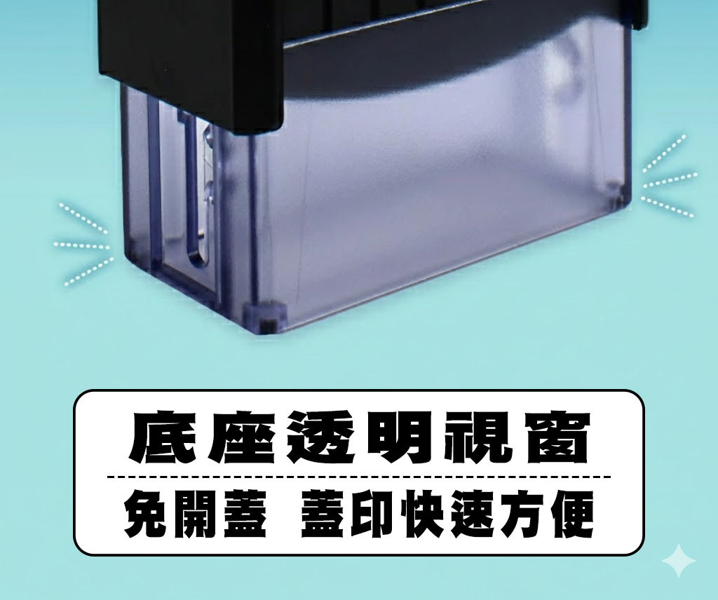 • 穩定度高:底座透明視窗設計,蓋印位置精準不歪斜。