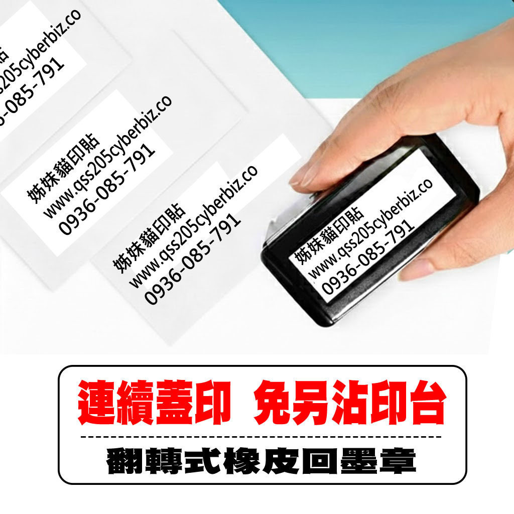 【姊妹貓印貼】 地址印章 橡皮回墨翻轉章 自動印 LOGO地址章