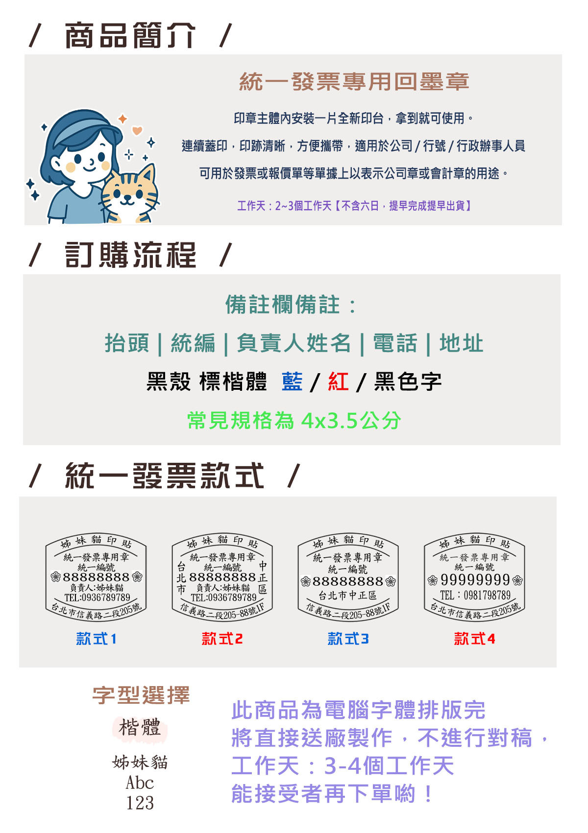 姊妹貓印貼 發票章 發票回墨章 發票翻轉章 翻轉自動印 連續發票章