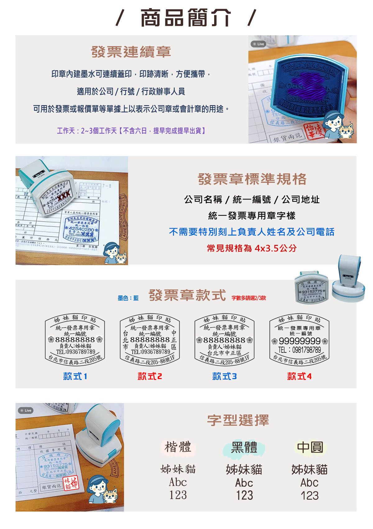 有平常在使用的發票章,也可以提供給我們參考製作唷!