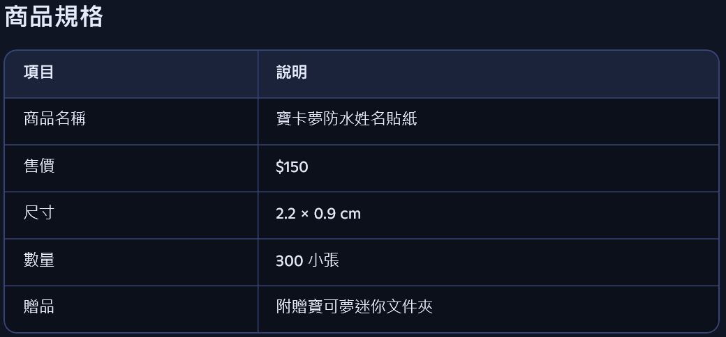 • 個人化姓名印製:可客製化印上姓名,避免物品混淆或遺失。